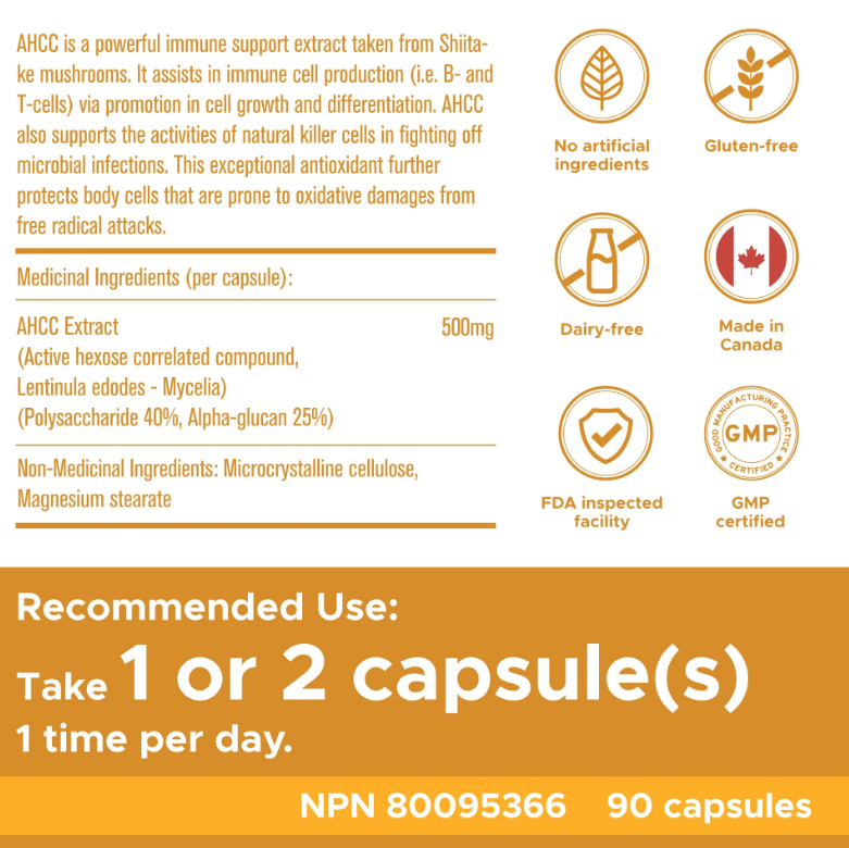 Boosts immune function: AHCC has been shown to enhance the activity of natural killer cells, which are white blood cells that help to fight infections and cancer cells. AHCC also increases the production of cytokines, which are signaling molecules that play a role in the immune response.