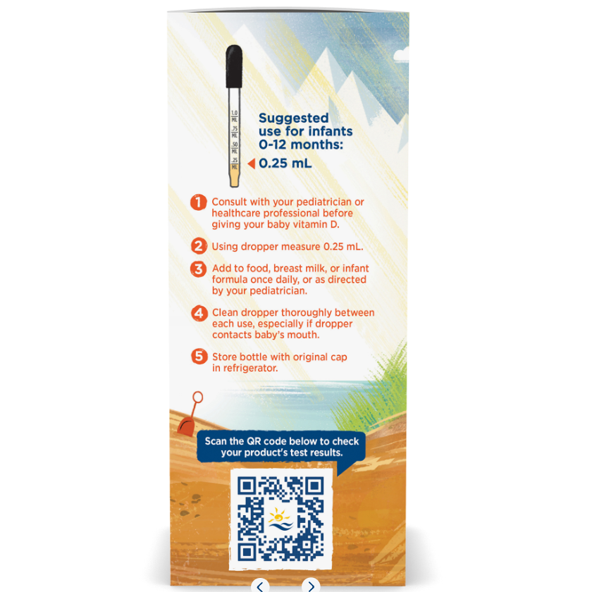 Suggested use: For infants through 12 months, 0.25 mL daily, or as directed by your pediatrician or healthcare professional.