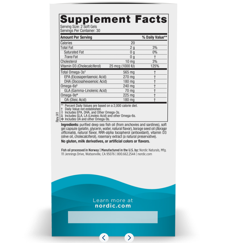 Complete Omega™-D3 blends omega-3 EPA+DHA with GLA and oleic acid from borage oil for healthy skin, joints, and mood and vitamin D3*