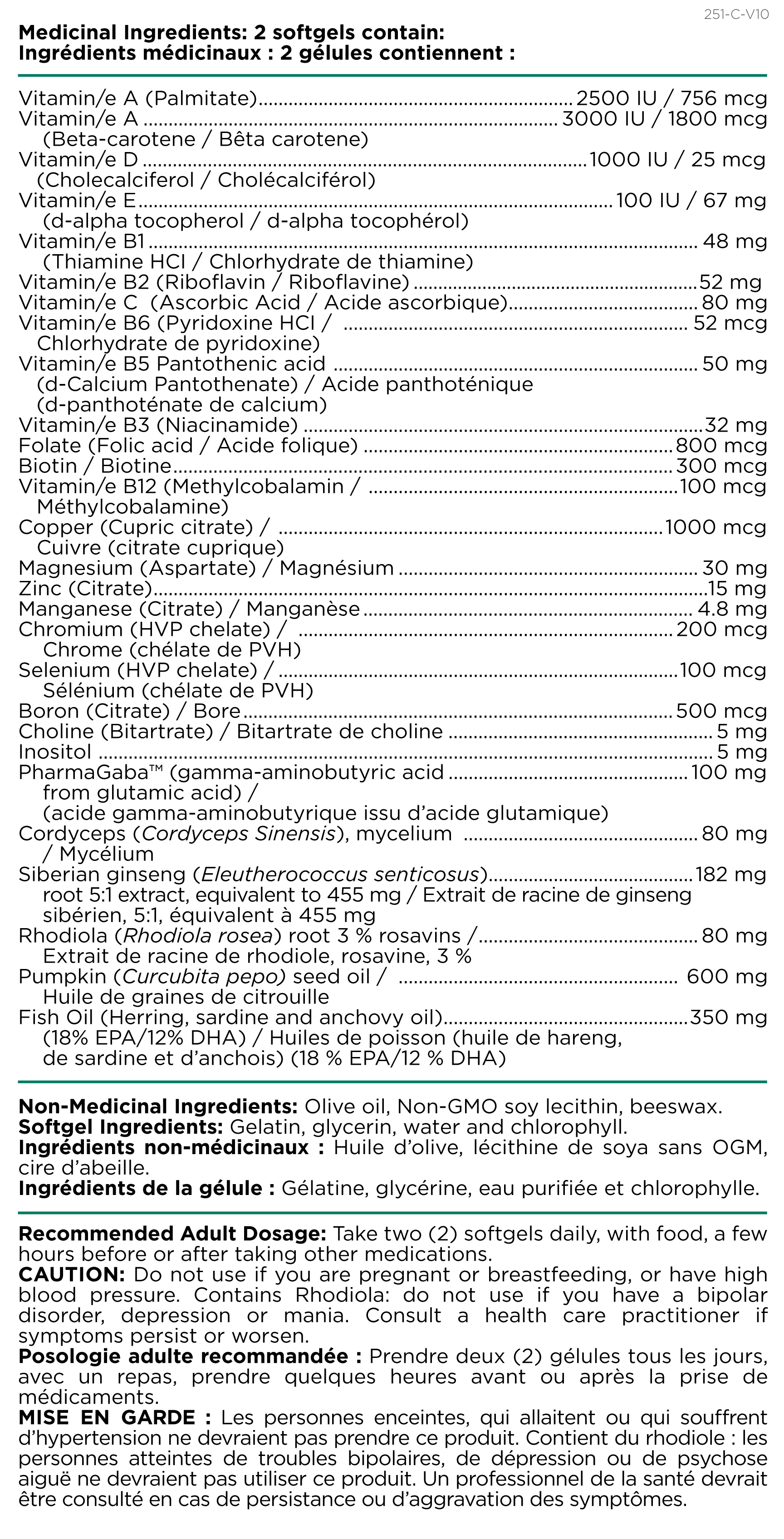 To help you win the battle with stress, Easymulti Stress for Men combines your daily vitamin and mineral needs with GABA, Cordyceps, Rhodiola Rosea and Siberian Ginseng.