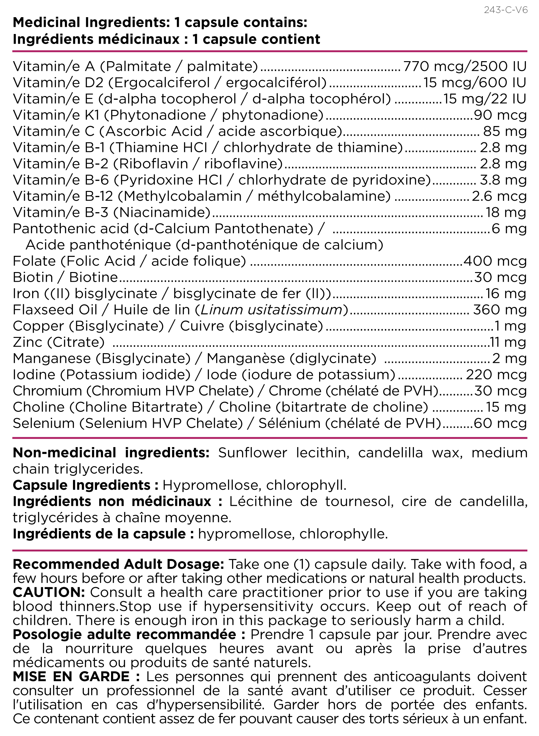 Prenatal Easymulti Vegan is a comprehensive multivitamin to complement a vegetarian or vegan diet for women during all stages of pregnancy. In one liquid capsule a day, it combines the daily vitamins, minerals, plus Omega-3 from flaxseed oil to support fetal development.