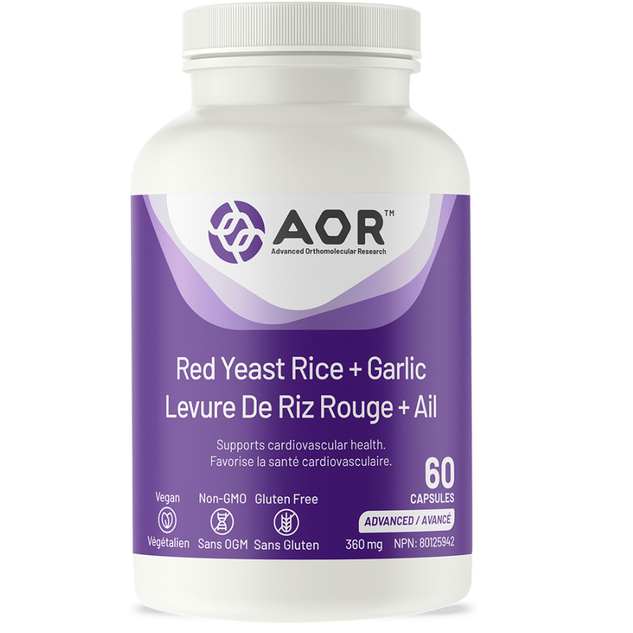 AOR’s Red Yeast Rice + Garlic harnesses the complementary relationship of both ingredients to deliver superior results. The primary effect of Red Yeast Rice (RYR) is to provide antioxidants that prevent the oxidation of cholesterol that can lead to the formation of plaques. Oxidized LDL is particularly atherogenic and contributes to plaque formation in the arteries. Antioxidants support healthy blood vessels by maintaining the cholesterol in its normal reduced state. RYR works synergistically with garlic to dilate blood vessels to allow for smooth blood flow to reduce fats in blood depositing in blood vessels.