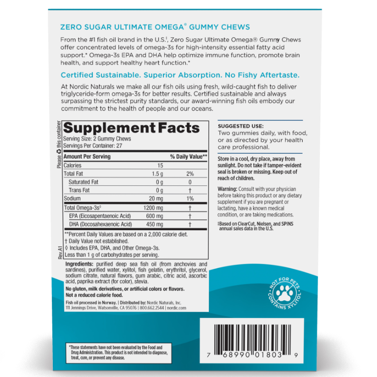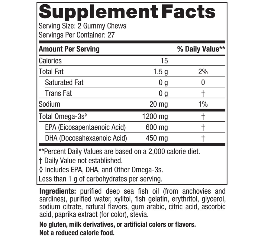 These delicious, zero-sugar gummy chews deliver concentrated levels of omega-3s in every serving for a fun alternative to soft gels.